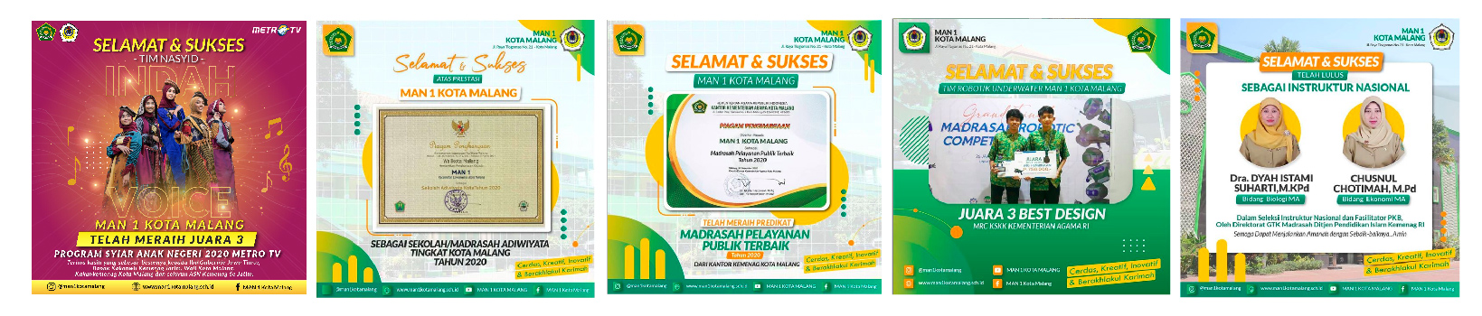 Alhamdullillah, prestasi demi prestasi telah diukir selama tahun pelajaran 2020/2021. Semoga, ukiran prestasi MAN 1 Kota Malang pada tahun pelajaran 2021/2022 mendatang semakin meningkat. Tidak ada kata menyerah dalam hal kebaikan, utamanya meraih prestasi untuk mengharumkan nama MAN 1 Kota Malang. (Humas)